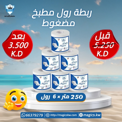 Kleenex ROLL ( 125 M ) 400 gmMagics 2 PCS - منفوش - ابيض سادة - خشن - طبقةواحدة
